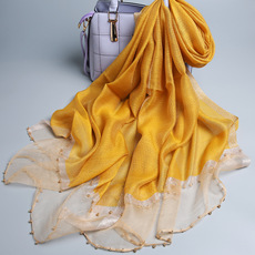 新款弹力金丝春季印花仿真丝丝巾女士波浪边防晒披肩围巾