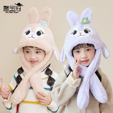 儿童帽子耳朵会动卡通兔子围巾一体帽男女宝宝冬季护耳套头