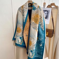 法式冬季城堡油画系列仿羊绒长巾披肩围脖文艺时尚保暖围巾