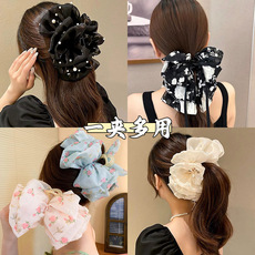 法式复古碎花蝴蝶结丝带马尾夹发夹少女纯御发饰特大号抓夹
