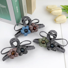 AB面针织毛线花朵秋冬抓夹大号高级感灰色布艺蝴蝶结鲨鱼夹